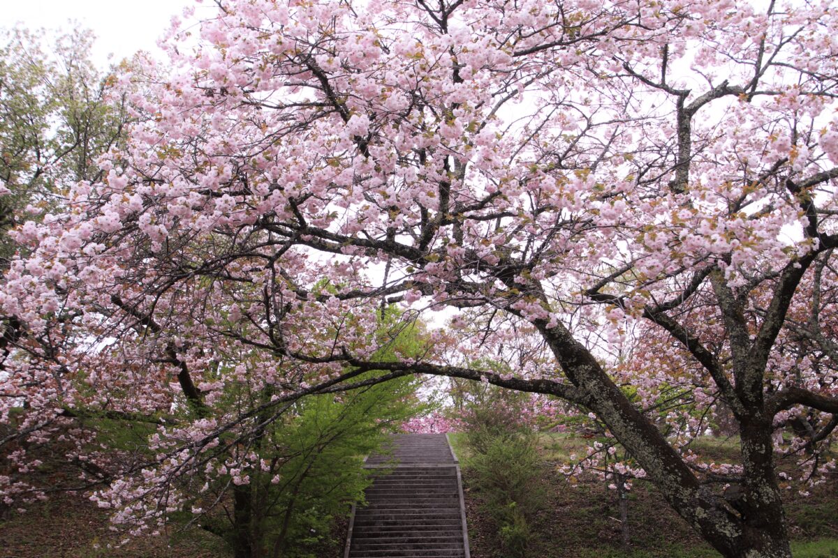 ただし!美の山公園エントランス広場から300~400m進んだ先、花の森には見頃を迎えている遅咲きの里ザクラがあります 緑の花を咲かせる桜:ギョイコウ(写真3枚目)もひっそりと咲いているので探してみてください!