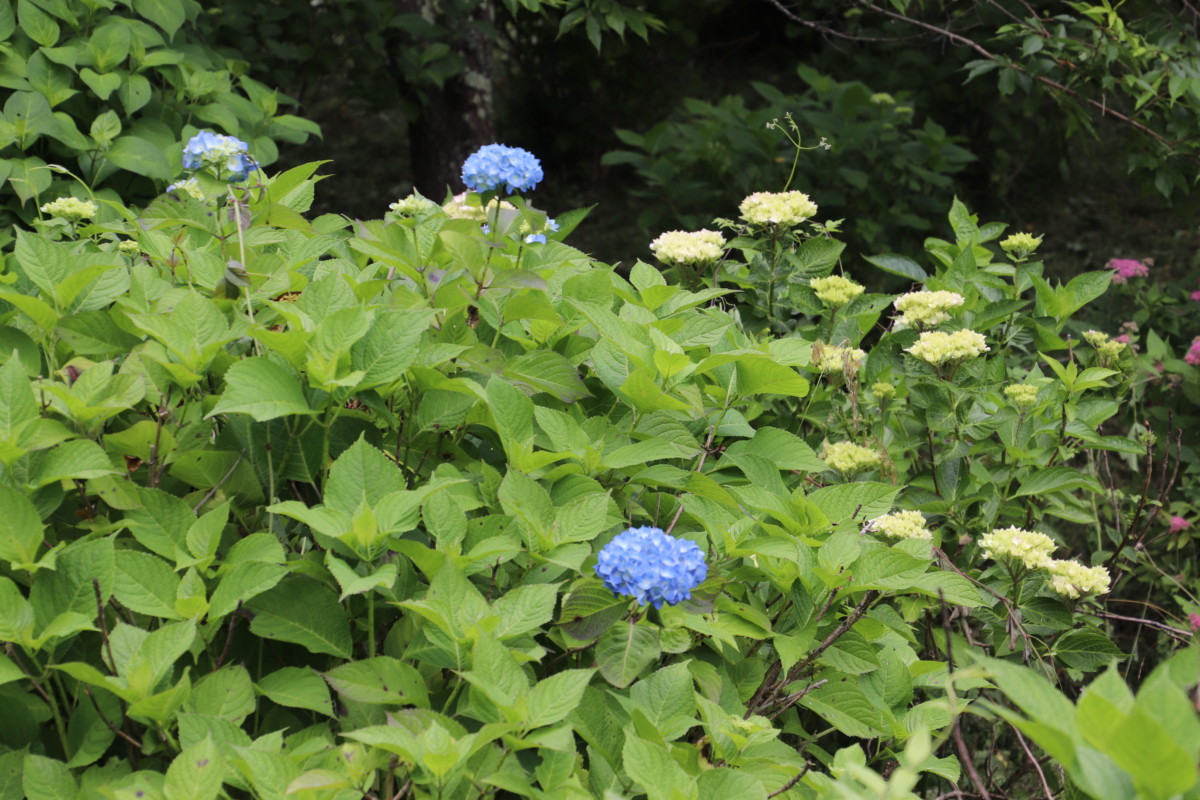 蕾も少しずつ開いてきて、早咲きのアジサイには花も付いています✨